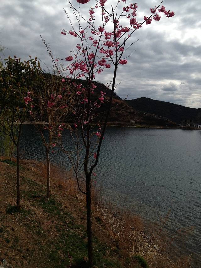 走婚桥到大落水很近,也就20多分钟。大落水村外的桃花都开了,粉色的花映着兰色的湖,分外的美。师傅给我们停车拍照,遇到从里格一路骑行而来的驴友,佩服。