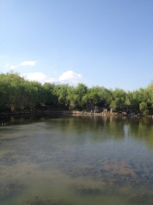 坐车去黑龙潭公园,在博物馆下车,就是黑龙潭的后门了。3月是丽江旅游的淡季,后门没人查古维费,轻松进入。千万不要从正门进,有人查的。所谓能看到玉龙雪山的倒影,基本是梦想。池子不大,且大部分都已枯竭,如果还要收80古维实在不值一来。高原的阳光很晒,走的口干舌燥,买了杯雪梨汁甚是解渴。黑龙潭离花马街很近,喜欢吃虹鳟鱼的走着就能到。