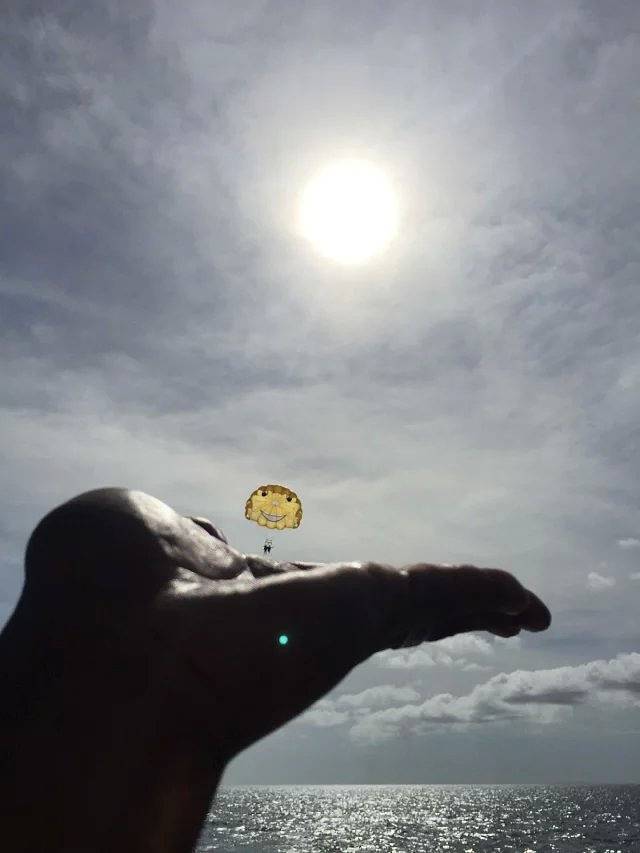 两个大男人迫不及待的租了浮浅设备就下海happy了。我们两个女人在海滩上各种自拍。臭美。