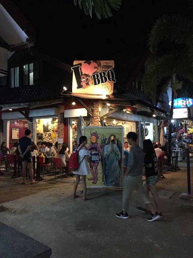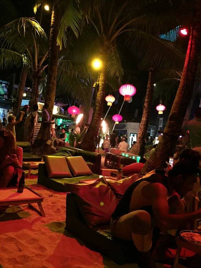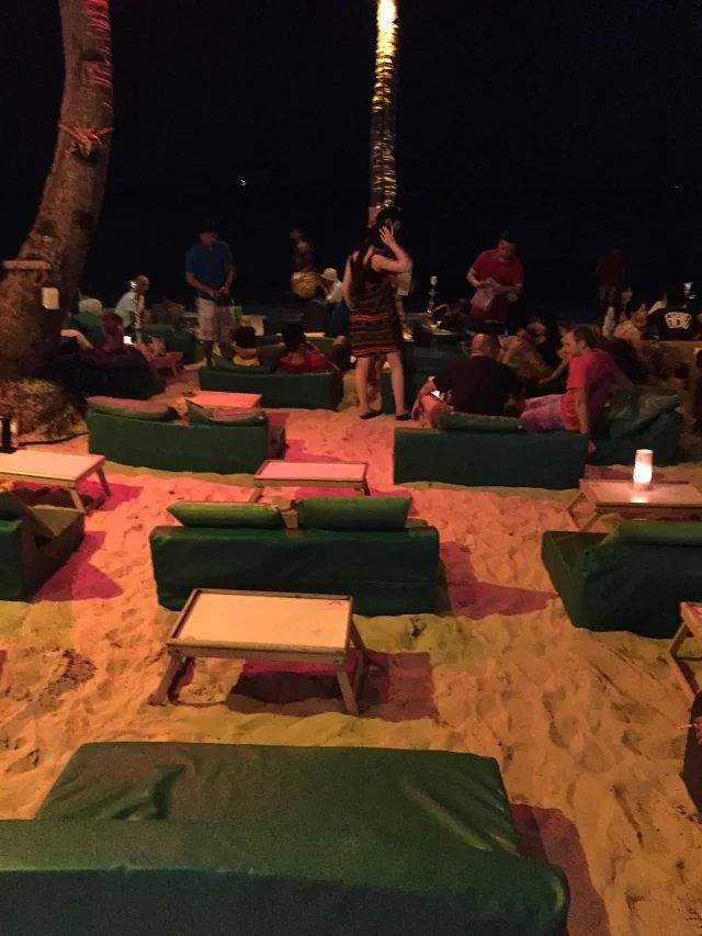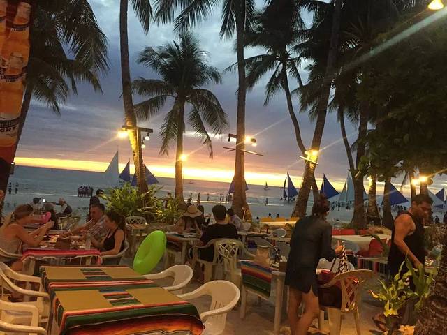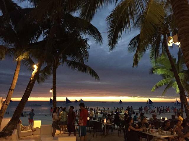 第一天晚上我们根本不知道酒店后门出去就是沙滩,还跑到正门坐了TUTU车去D-MALL。60比索。一到达沙滩,我不禁感慨,长滩岛的夜晚真是热闹非凡啊。整个沙滩全是酒吧,好不热闹。吃完东西后我们找了家酒吧喝酒,坐在沙滩的沙发上,喝着酒,欣赏焰火表演。真的很惬意。。