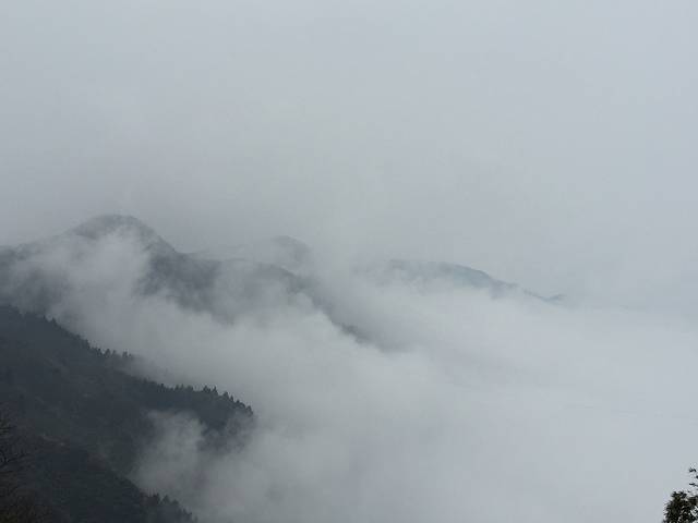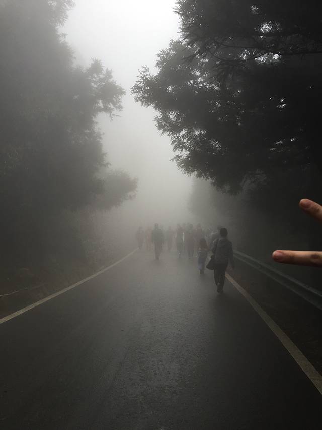游玩当天尽管山下已经停雨了~但山上仍细雨绵绵~ 从山顶的索道站到祝融峰还是有一段距离的~ 路程约4公里~我们花了将近一个小时~山路十八弯…… 祝融峰果然值得一去~