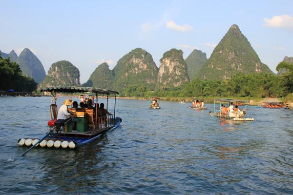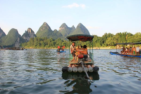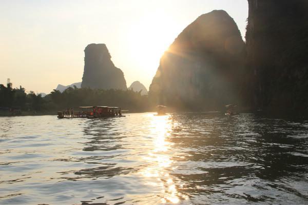 这里还要插一个小小的注意点,那就是:在船上的时候记得把东西放好,因为两边不是围起来的,所以有时候一个不小心东西会掉进江里。我就吃亏了!发了微博后,手机放在牛仔裤兜里,一个转身,“扑通!”一声,一个不留神,手机就掉进了江里。刚更让我伤心的是,掉的地方还是漓江最深的几个地方之一,完全就没办法了,影响我整个游江的情绪!希望大家引以为鉴,一定要记得把东西放好!