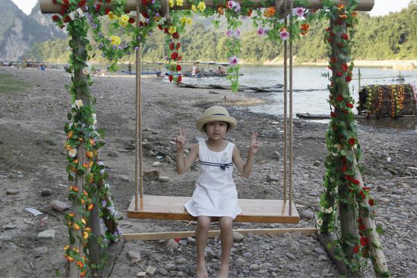 在行程的中途,一般都会有一个短暂的停靠,到一个小小的浅滩上。上面可以买东西,还有少数民族服饰出租,提供拍摄。说到拍摄,整个阳朔景区布满了单反,统一佳能550d,稍有不留神就会被拍,而到游玩结束,就会统一到一处,问你要不要买照片,均价10-20左右。
