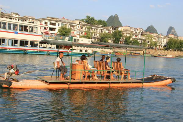 我们并没有仔细逛逛这条老街,就先直奔码头了!从这条街的中心一直穿到头,就是漓江码头了,那里有很多竹筏带你游漓江!ps竹筏通船是有时间限制,好像是七点以后就不能通船了,因为在晚上,漓江上有《印象刘三姐》的表演,这个就稍后道来咯!
