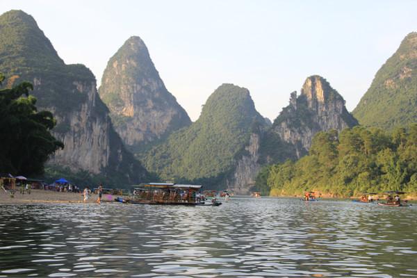漓江的水真的挺绿的,搭配着座座小山丘,风景真的挺不错的!
