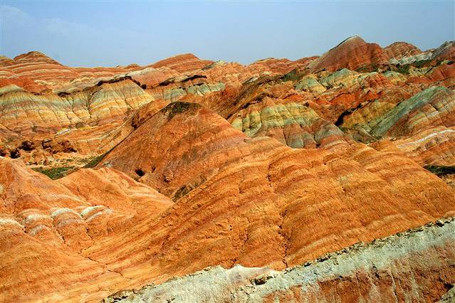 张掖丹霞地貌很壮阔,天晴的时候红得耀眼