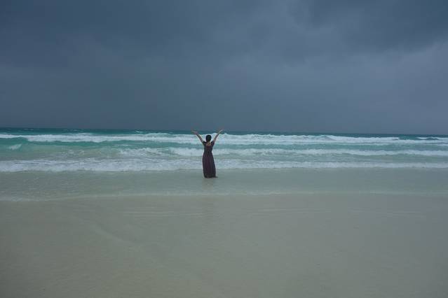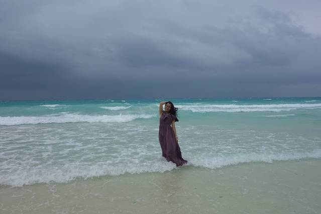 鞋子:去淘宝买了一双一字带的鞋子,有点厚底,建议还是平底的好,其实在沙滩上还是光脚好看,尤其是照相的时候