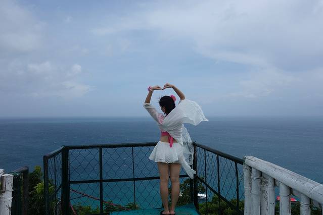 今天天气出奇的好,出了太阳,好开心,但是还是有台风,因此还是不能玩海上项目,自己再海边臭美拍照~也不错,哇哈哈~