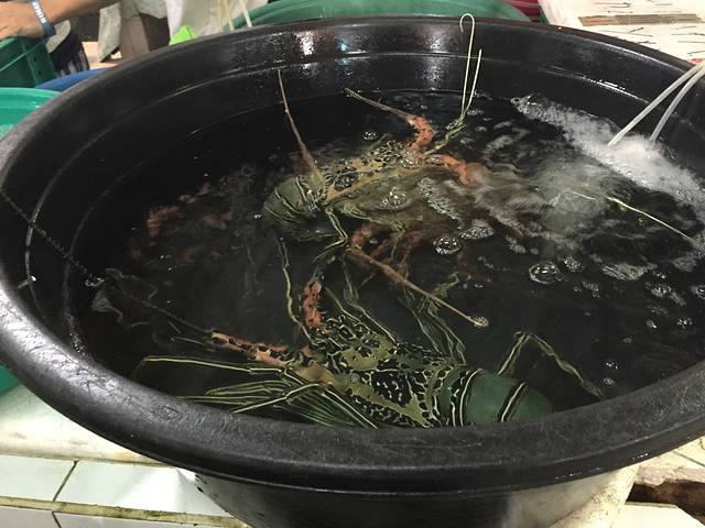 今天一天都在下雨,晚上在海鲜市场买了海鲜加工