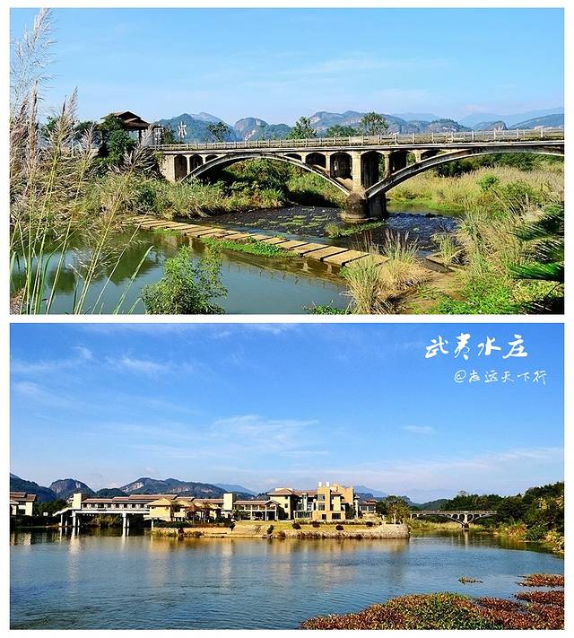 图6-图7:梅溪河横贯造就了途家•武夷水庄“一江两岸”的独特景观,一切似乎是因水而生。别墅距武夷山景区超近的,乘车只需十几分钟的时间。