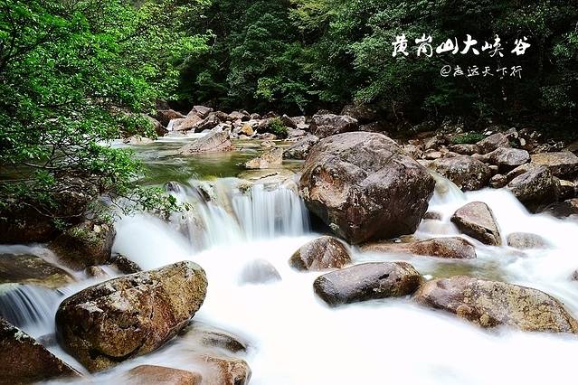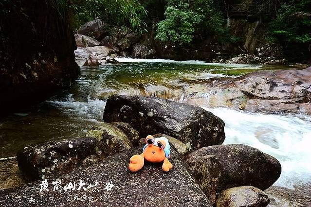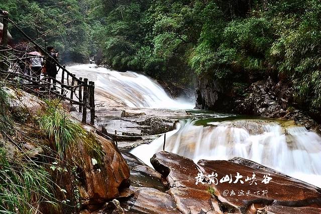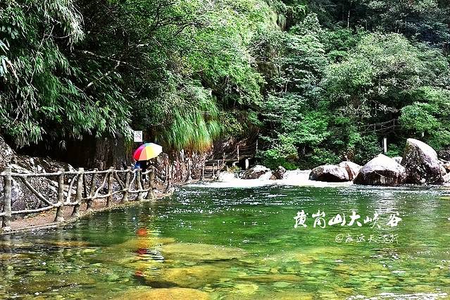 黄岗山大峡谷是沿溪流而逐渐向上,两岸山峰陡峭,但步道很平缓;峡谷里气候潮湿,植被丰富,是地球上生物多样化的绿洲。徜徉在峡谷内,只见山水相互辉映,色彩实在太丰富了。溪水、深潭、瀑布随处可见,水清的沁人心脾。虽不如九寨水面积大,却因丹山、红石、绿水交相辉映,使得色彩变幻无穷;步行在潮湿的石阶上,品听水唱鸟鸣,饱吸天然富氧,一切烦恼,统统抛至脑后。走着,看着,几乎举起相机就会有美景收入镜头。