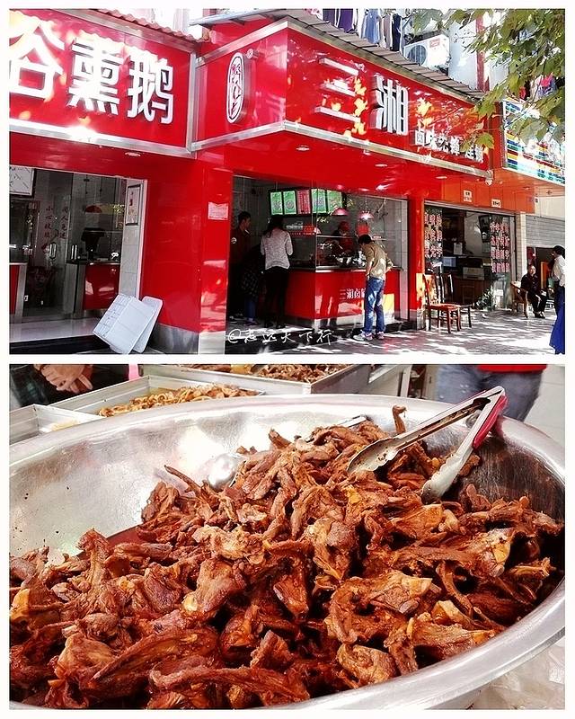 Tips:购买鸭架推荐“三湘卤味”,熏鹅推荐“岚谷老街”, “孝母饼”推荐紫阳饼铺,味道才正宗,口感才最佳。鸭架和熏鹅一斤33元,有辣和不辣两种口味;“孝母饼”有多种馅可供选择,一盒六个8元。