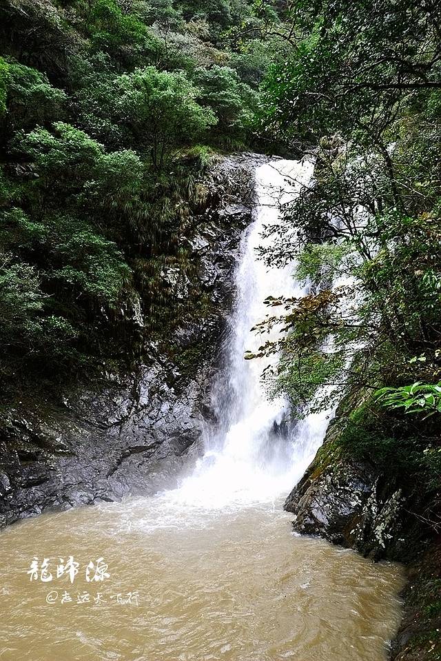 龙归源景区是一个典型的“V”字形峡谷,峡谷深邃幽长。拾阶而下,走到河底,便是龙归源景区的第一景点——龙凤瀑布。这瀑布落差有几十米,左右两条分开的水流轰然坠落,左边的水流没有任何旁支,像条巨龙,右边的由于山石形状把水分开了一些,仔细看,真像一只凤凰。