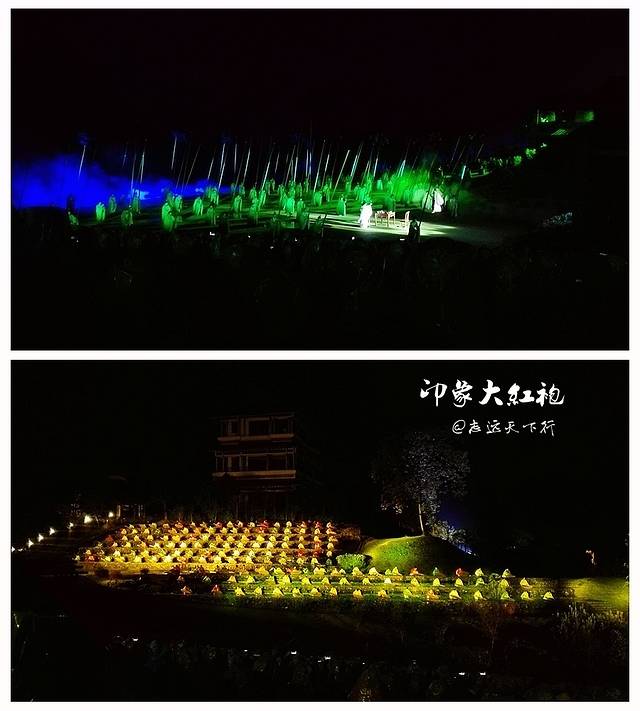 Tips:印象大红袍演出时间为每天20:00,9点10分左右结束,旺季(含周末和节假日)会加演一两场入场时间19:30分-19:50分,因观众席为360度旋转切。门票价格二等座218元/人,一等座298元/人,尊贵席698元/人。可通过酒店或网上预定,会有一定的优惠。自驾过来的观众,可把车停放在茶博园停车场,然后步行到游客集散中心总台,凭订单号自助取票。观看演出需提早半个小时检票入场,途中要过安检,1.2米以下儿童免票,19:50分后将拒绝入场。