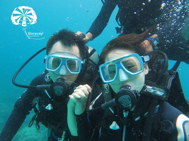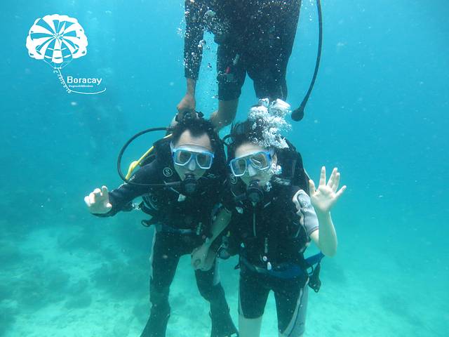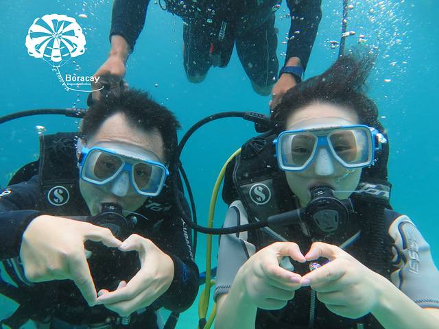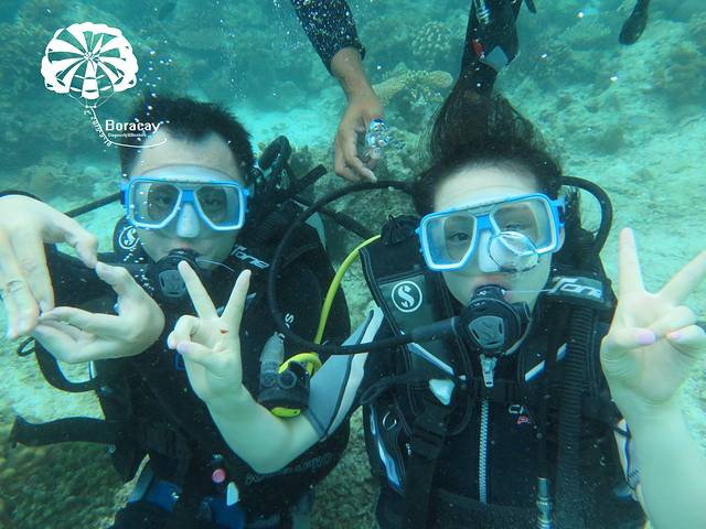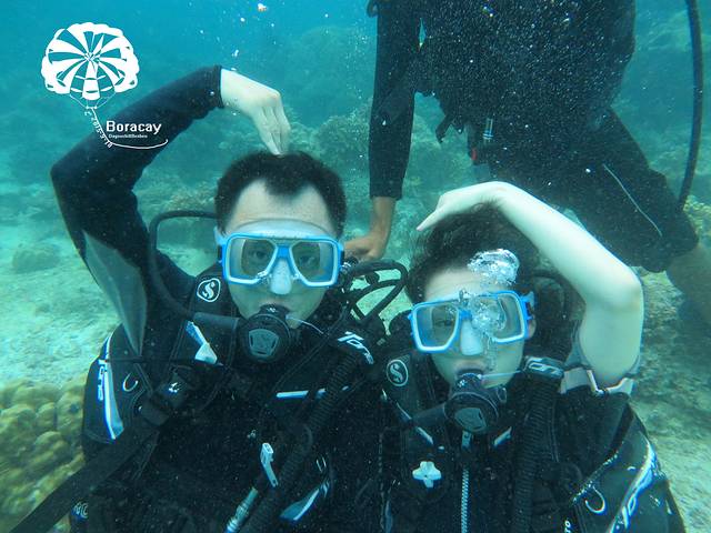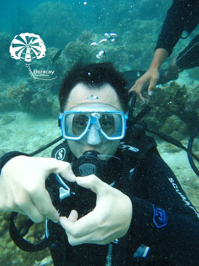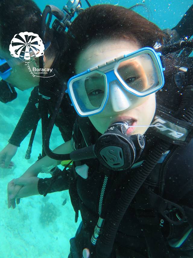 这是在某宝定的深潜和跳岛游只有378rmb还是很划算的哈哈哈,深潜是个中国老板开的,在长滩八年了有2个儿子,大儿子就在长滩生活不用上学请家教,平时骑骑马,打打高尔夫,十几岁送去开飞机多么美好的安排啊,小儿子留在上海读书。老板侃侃而谈,有五星级的酒店人生大赢家啊,因为是中国老板所以给我们培训的时候比较容易懂哈哈, 耳朵有痛捏住鼻子耳朵出气或者咽口水,后来大狗屎说坐飞机也很有效的哦。。