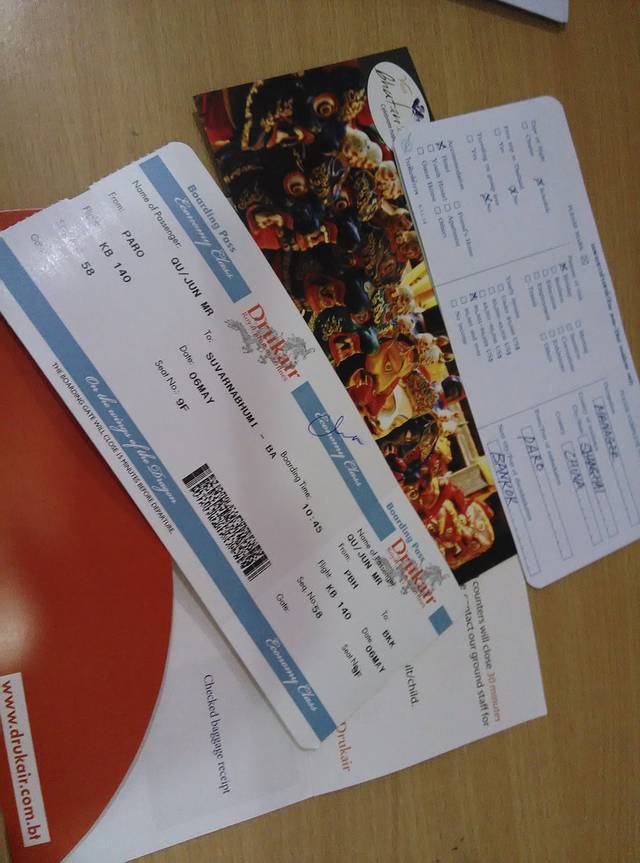 因为不了解曼谷机场的国际转机流程,(在网上也几乎找不到从曼谷转机去不丹的经验介绍)我们不知道到了曼谷之后是不是一定需要进关提取行李后再出关出发去不丹,所以通知好了各位成员带好照片,以备从不丹回曼谷时候办理落地签证。