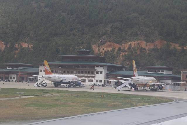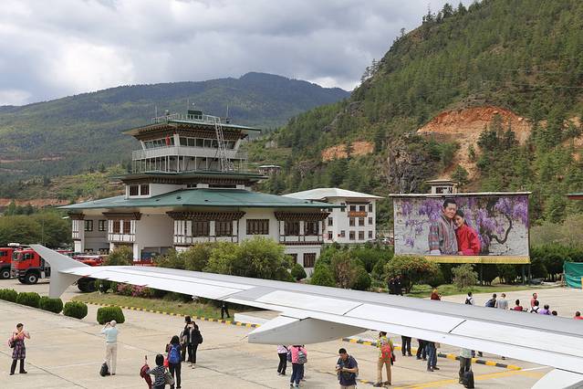飞机轻盈的降落在跑道上,神秘的不丹! 我们来啦