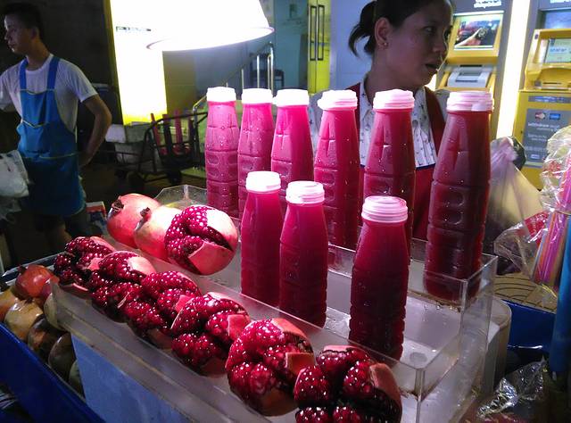 街边随处可以看到的石榴汁太物美价廉,40泰铢一瓶,100泰铢3瓶,200泰铢可以拿走7瓶