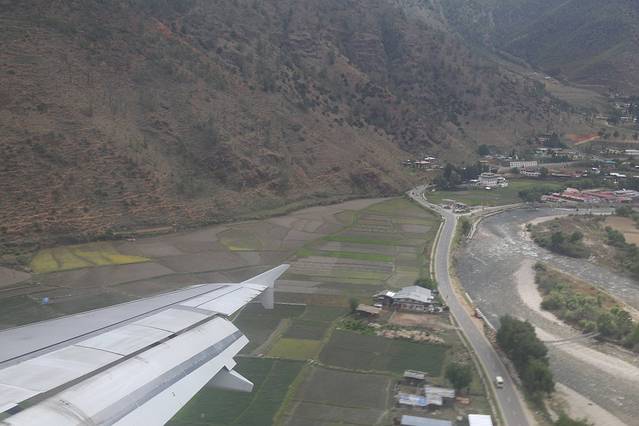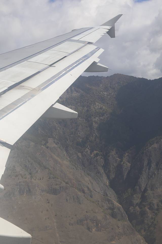 果然,在飞近不丹机场的时候,飞机很明显的拐了个大弯,然后就在山谷中徐徐下降