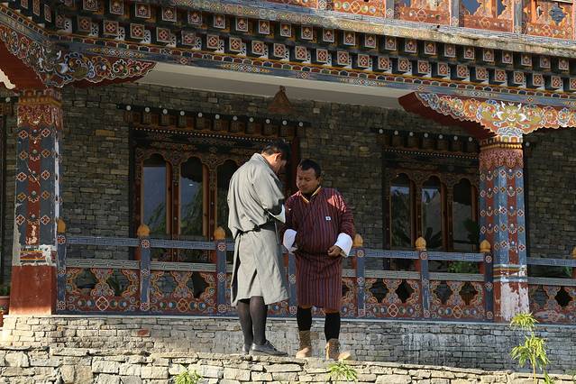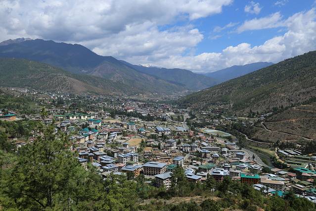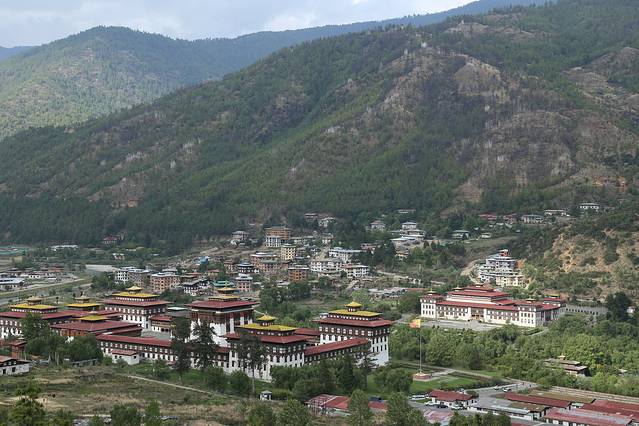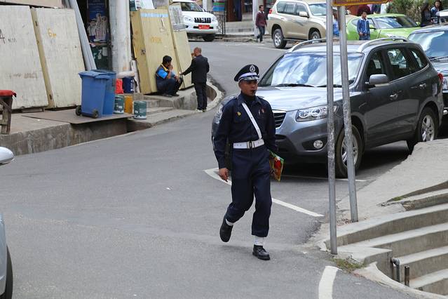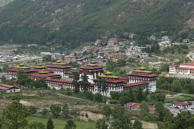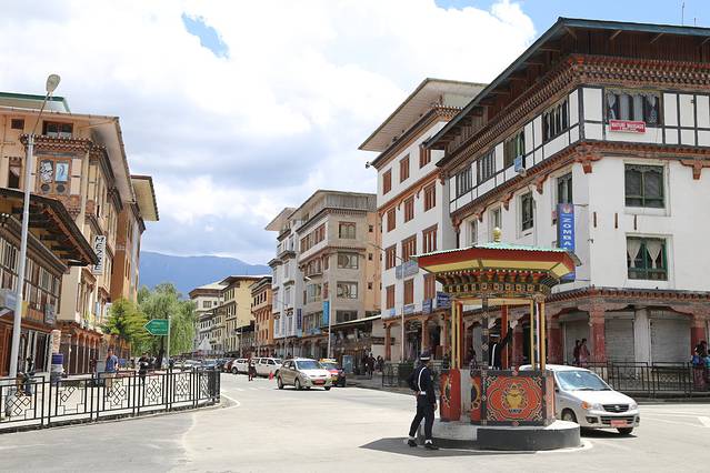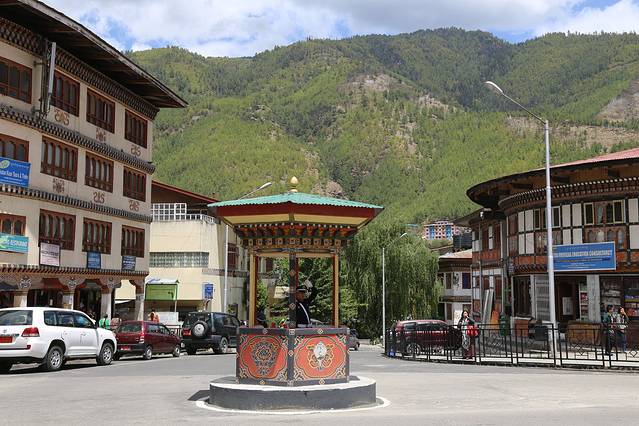 廷布,作为不丹的首都,是一个小得不能再小的都市。人口仅十万人,没有林立的高楼,没有拥堵的车流。以致于城市道路上也没有交通红绿灯。在最繁华的市区十字路口,也仅有一座交通岗亭。不丹,如果用物质化的眼光来评价,肯定是一个落后的山地小国。但是一旦走过,就会强烈的感觉到,这个国家却是安定和谐,国民幸福安康的。也被评价为亚洲“幸福指数”最高的国度。