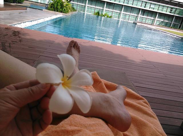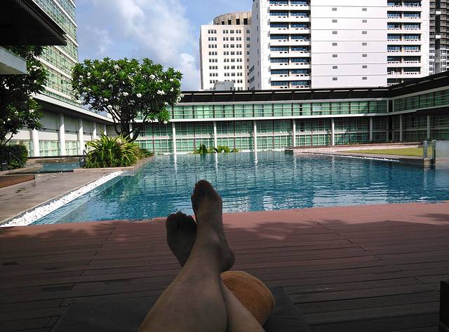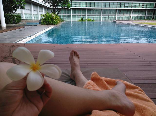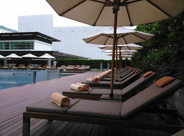 一早起床,直奔酒店的屋顶游泳池,曼谷的夜生活习惯使得当地人的生活规律都是晚睡晚起。