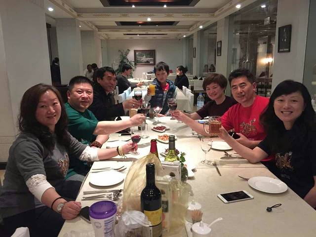 午餐的地点在市中心某栋建筑的5楼,景观非常的好,能否看见远处的高山和蓝天。