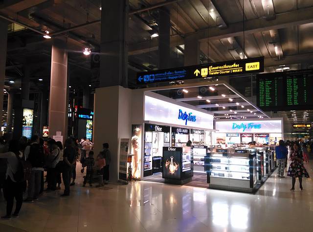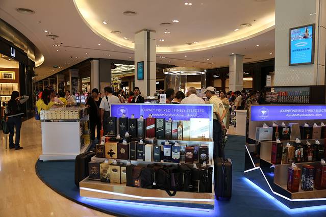 进门后,需要在手续台出示护照登记,并拿到折扣券(9折券)因为我们入住的是King Power的酒店,所以酒店给我们的是8折优惠券,可以在选购的商品中挑选任意的一件享受8折的优惠。办好手续后,就从这里坐电梯上二楼