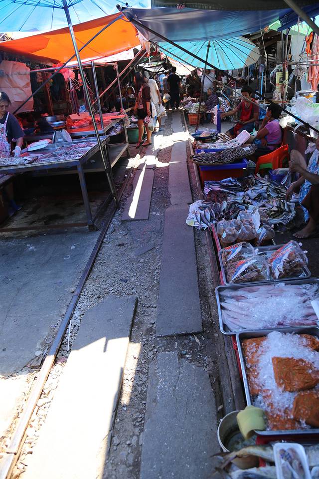 美功菜市场本来是泰国美功小镇的一个毫不起眼的菜市场,这里是当地人们购买海鲜、蔬菜、水果等食品的一个小菜市场。但是,因为美功火车站往曼谷方向去的火车会穿过的这个宽度不足2、3米的菜市场,场面十分惊险,于是美功菜市场被人们当做了一个旅游景点,凡是去泰国的游客,都会慕名前往去欣赏。