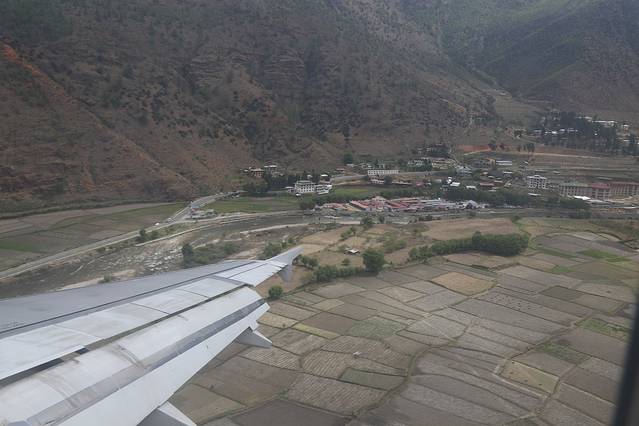 看着窗外机翼下的城市郁郁葱葱的椰林中的房屋,心想不丹的绿化还真不错哦