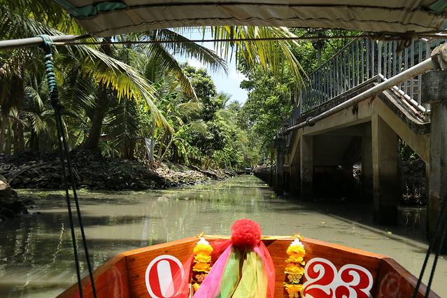 不算干净的河道里不时有载着游客的长尾船开过。