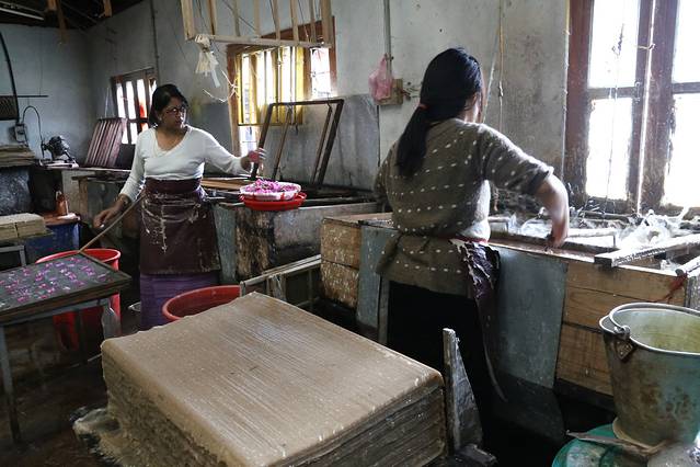 看来到了不丹,也是如此。导游带着我们来到一个造纸厂,让我们看看不丹的手工造纸技术