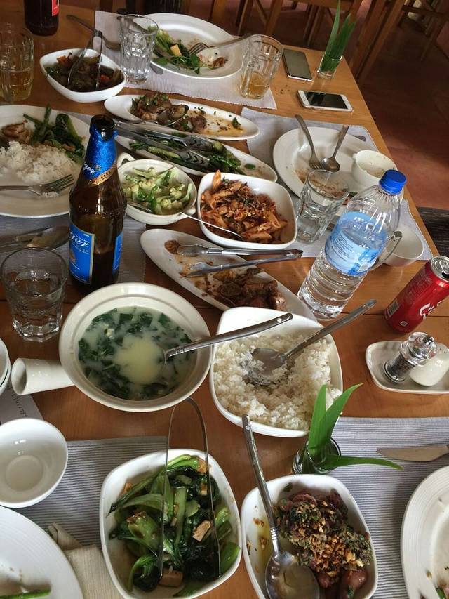 我们到达餐厅的时候,几乎没有人,但是因为刚刚在候机层吃过东西,现在面对众多价廉物美的泰国美食却一点都没有了胃口