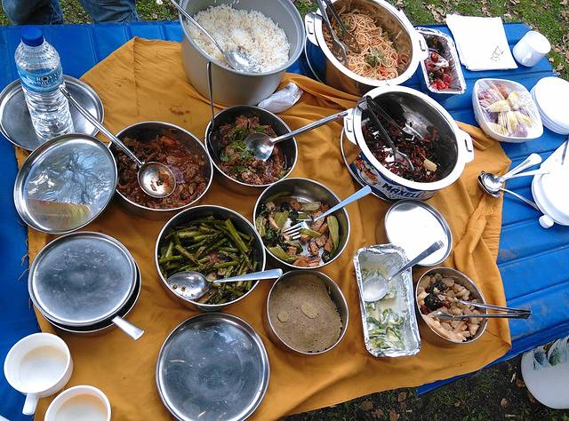 餐食并无多大的亮点,自助餐的形式,红烧鸡肉土豆、炒面、炒饭、面拖鱼、茄盒等等