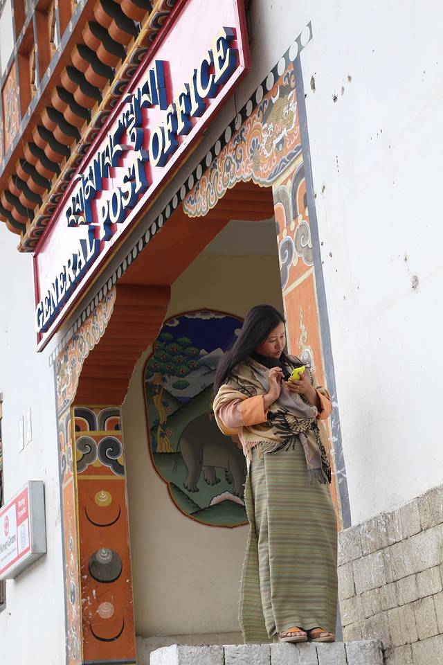 因为邮电总局就在廷布市中心的大街旁,所以我们就可以顺便浏览在大街上南来北往的不丹人民和沿街的商店。