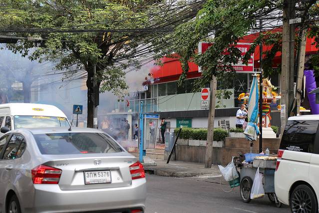 沿街的路边有新店开张,原来在泰国也流行放鞭炮庆祝开张之喜的。