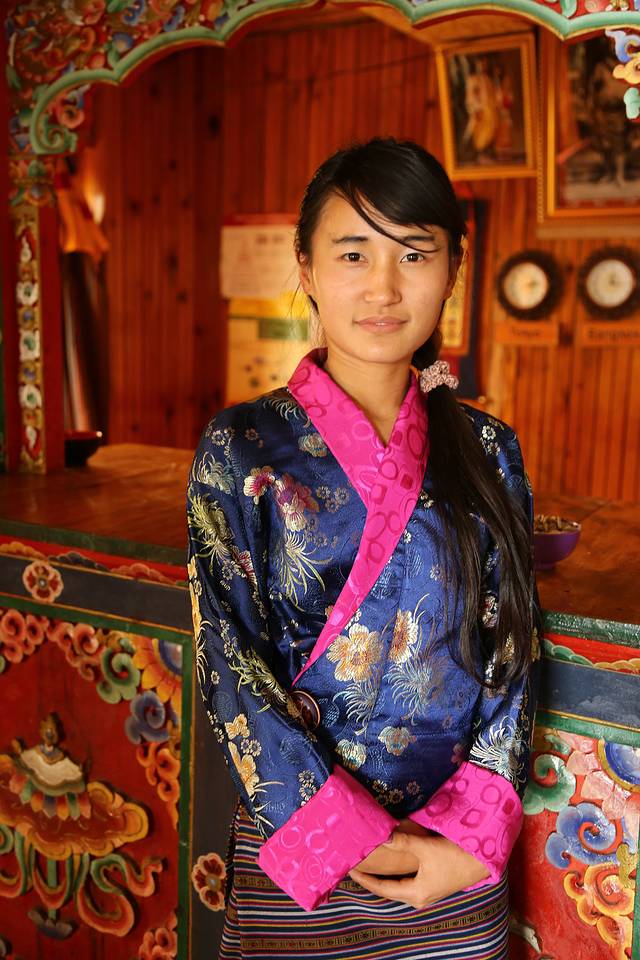 不丹空姐们穿着典型的不丹民族服装,笑脸相迎