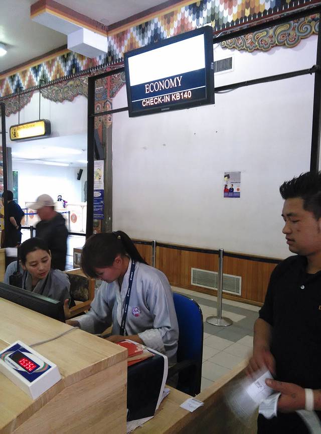 在咨询柜台里的小姑娘查了电脑后,很肯定的告诉我们,我们的行李会由专人帮忙提取后转到不丹航空公司,请我们放心直接过国际转机候机即刻。