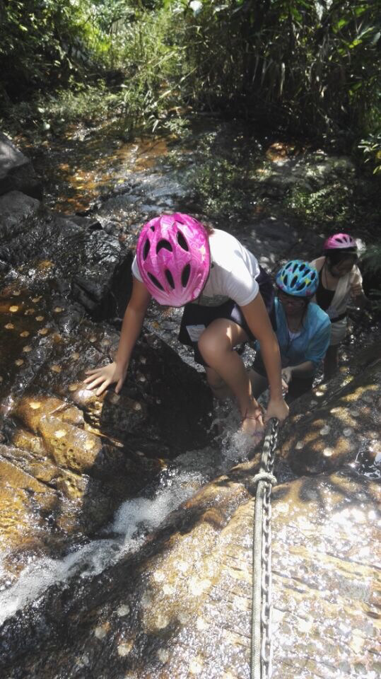 踏瀑戏水真的值得尝试一下。草鞋,头盔。很有感觉
