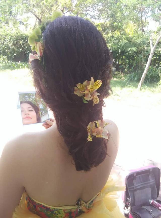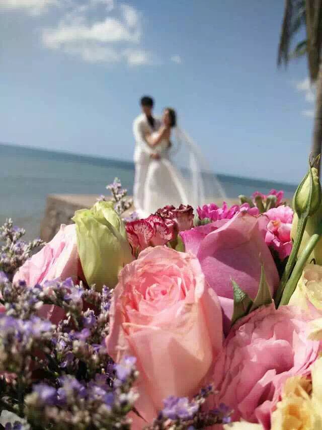 头一天要买这么一大束鲜花,第二天拍照的时候可以用来做手捧花和造型花
