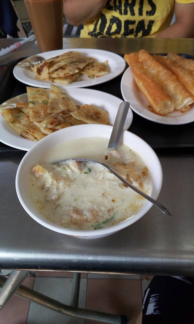 早餐,是在民宿附近的甜记豆浆,都是杨爸爸介绍的,吃了传说中的咸豆浆,咸豆浆,是加了一点醋,然后,化学反应,就变成了豆花样,原来,只有豆浆的浓度到一定,才有咸豆浆的出现,所以,要吃,就一定要去有咸豆浆的店!