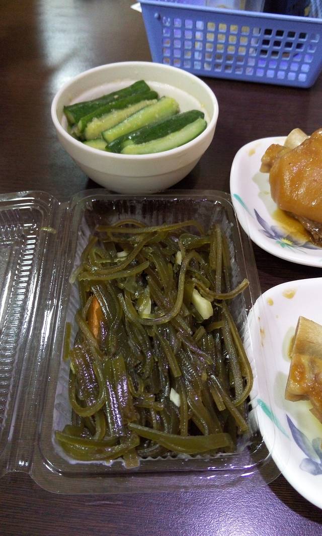 捷运站,盐埕埔,在驳二附近,有一家叫做“港园牛肉面”推荐的是,牛肉拌面,猪脚。最实际的吃法是:一份牛肉拌面,一份猪脚拌面。那就两样东西都可以吃到了,因为它的分量十分足。我们是分开买的,结果,吃得撑着……
