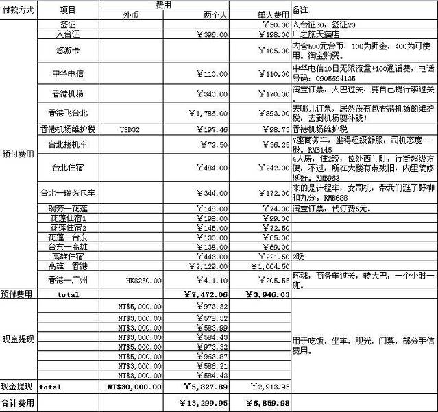 住的地方,都写在了行程里。总共的花费表,在最后一幅图了,大家做个参考。