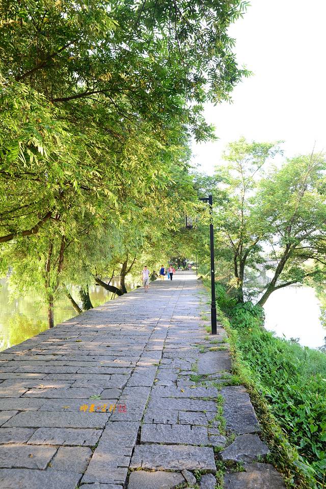 走过画桥后就是南湖书院,这个是比较有来头的,明朝末年,宏村人在南湖北畔建六所私塾,又称“依湖六院”,以供子弟授业解惑。清嘉庆十九年(1814年),将依湖六院合并重建,取名以文家塾,又名南湖书院,一直沿用到今天。走过南湖书院就来到了月沼,忽然觉得南湖到月沼真尼玛近,昨晚上找了半天才找到,在月沼的边上就是汪氏祠堂,出了这里就是敬修堂、乐贤堂。说句实话,这里的古村街道没有大研古镇热闹繁华,这里似乎显得更宁静,徽派建筑是众多画家心中的梦,所以在这里写生的人比比皆是,绕着宏村里面的路走了一遍又一遍,每次感觉都是走到原来的地方,最后还是选择在南湖边的石板凳上坐着静静的看着南来北往的人,炎热的酷暑,坐在这柳树成荫的湖边,一根烟一杯茶,享受着在热闹繁华的城市享受不到的凉爽,盛夏的宏村应是最佳旅游季节,池塘里的荷花竞相绽放,南湖与鳞次栉比的徽派古民居交相辉映,更显得诗情画意,优美的景致吸引我们的前来。出了宏村午餐还是选择的望湖土菜馆。