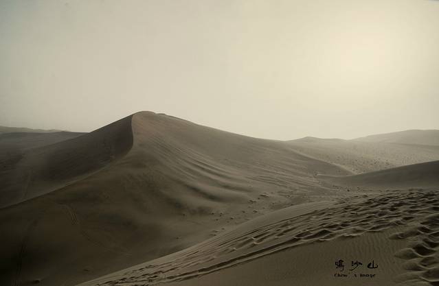 之后便打车去了鸣沙山,车快到的时候,真是吓我一大跳,我勒个去,这个高的沙堆!几十层楼高!直挺挺的立在马路前面.....