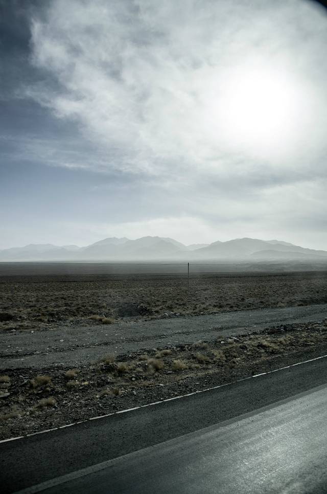 路上一片苍茫,大西北的荒凉直接摆了在车窗外,笔直的公路,甚至不需要动方向盘,90公里每小时的车速飞奔在200多公里的戈壁滩上