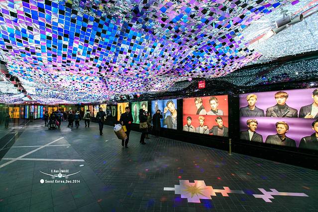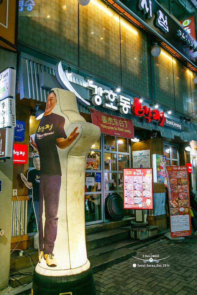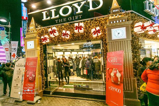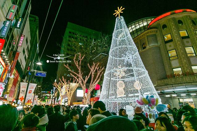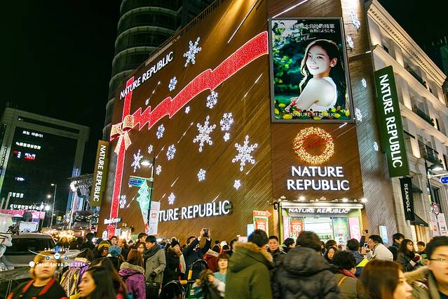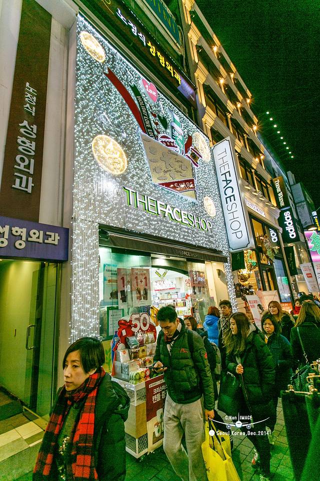 走进平安夜的明洞,并没有想象的中浓浓的圣诞气氛,灯红酒绿的感觉还是有的。其实来这里的不单单是国人,还有当地人,因为耳朵旁边经常听到“前轱辘不转,后轱辘转的思密达”。如此集中的商业街,逛起来还是很爽的。