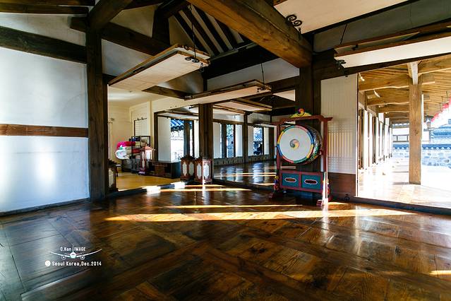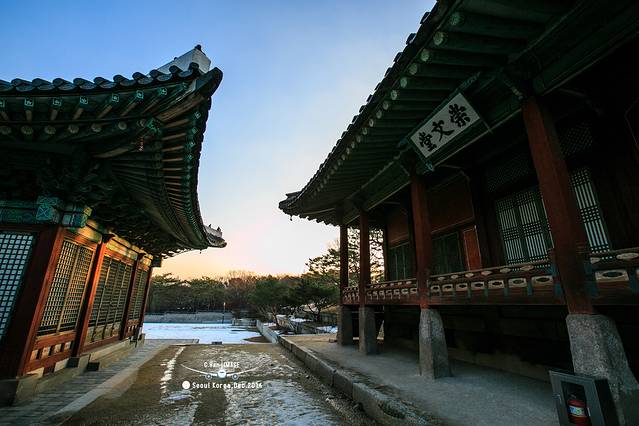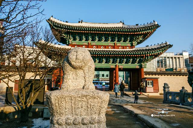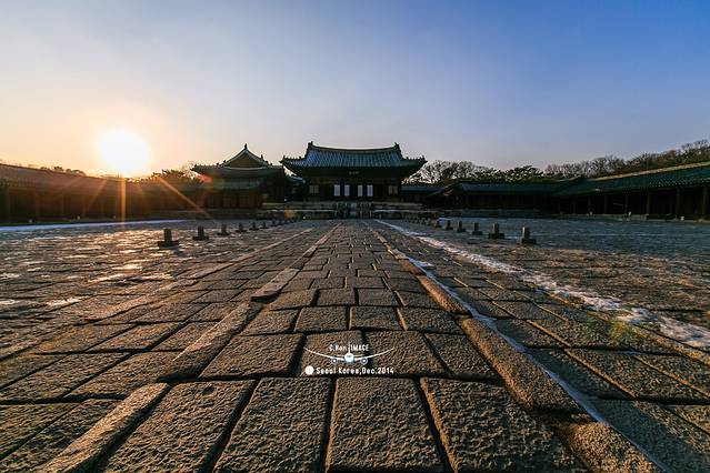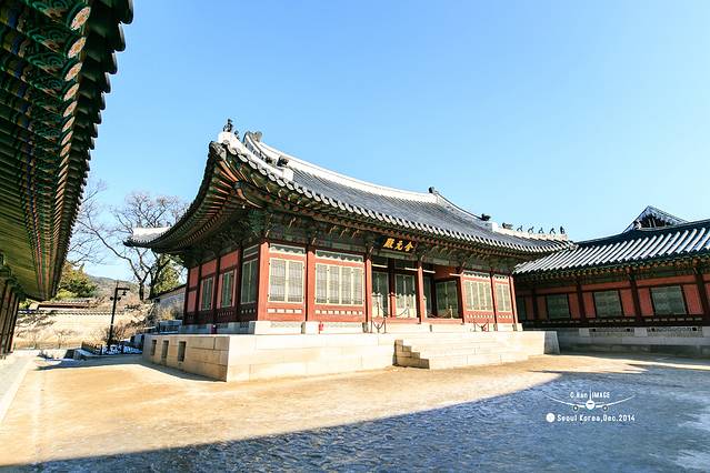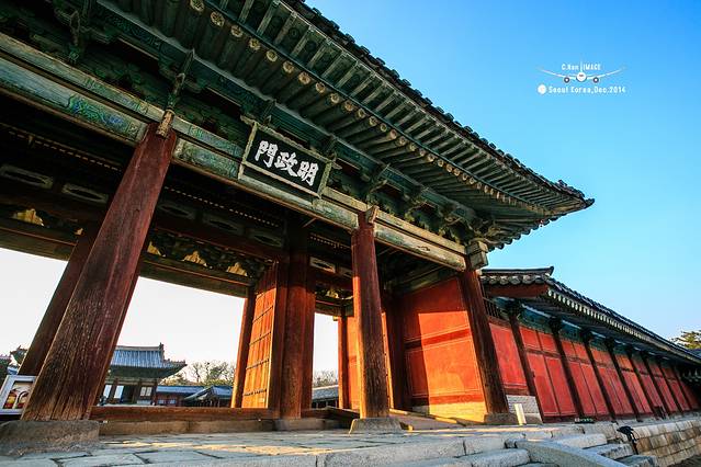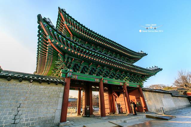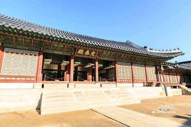 第一次朝鲜宫殿的处女秀给了这座宫殿,宫殿的正门很奇怪,没有像一般宫殿一样坐北朝南,而是坐西朝东,据说这是受我国儒家思想的影响,由于和宗庙太近,所以不能将正门朝向宗庙方向。