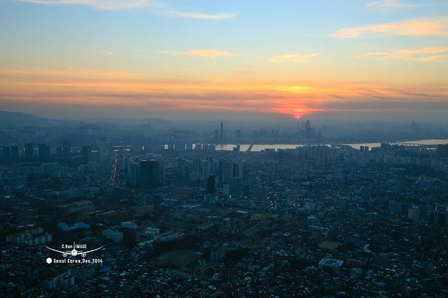 来到N首尔塔上面,没有露天平台,只能隔着玻璃拍照,还好我带着圆偏来的。太阳公公马上就要回家休息去了,趁着最后的这段时间,赶快找到一个合适的位置,留下在韩国最后的夕阳。