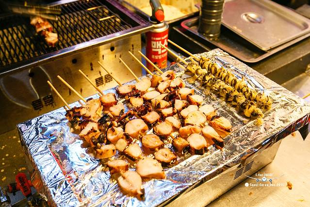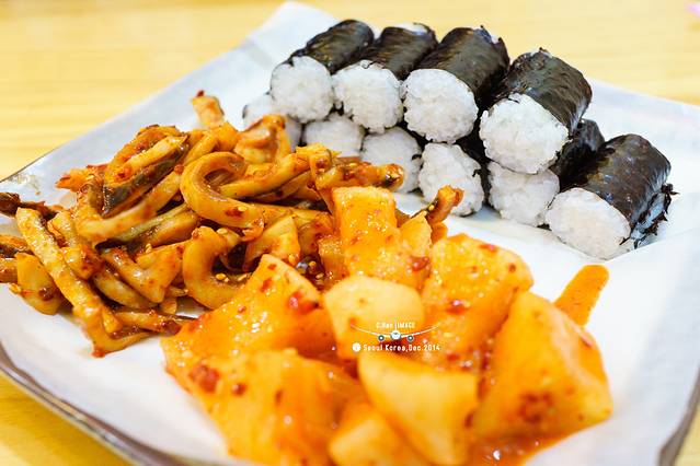 又在明洞转了一圈,吃了一些小吃。这个紫菜包饭,八抓鱼还有萝卜,买的是个套餐,还真的是辣,不过在韩国,别管吃什么,都会给你一壶冰冰凉的白开水,吃了冰水也就不觉得辣。