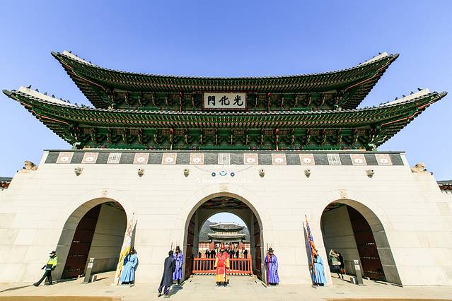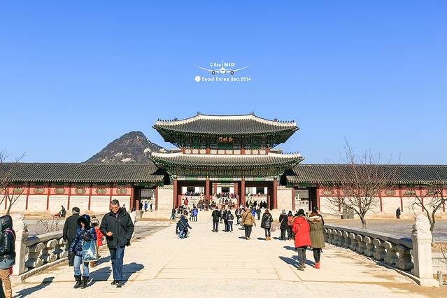 景福宫是首尔规模最大、最古老的宫殿之一,中国古代《诗经》中曾有“君子万年,介尔景福”的诗句,此宫籍此而得名,因位于首尔北部,也叫“北阙”。